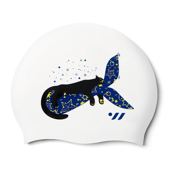 SWAVE Dreaming Jaguar Silicone Swim Cap White