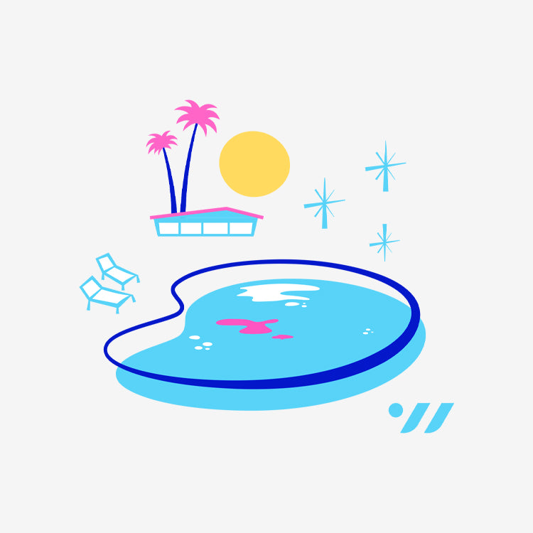 I'll show you the scenery of the indoor pool with midcentury illustrations.